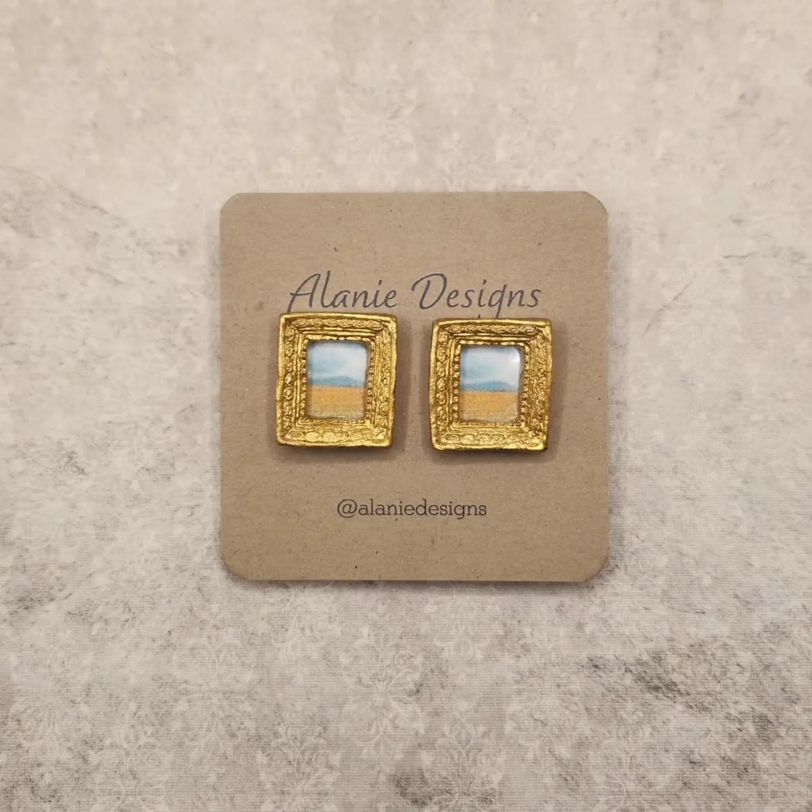 A pair of statement handmade frame-inspired stud earrings.
